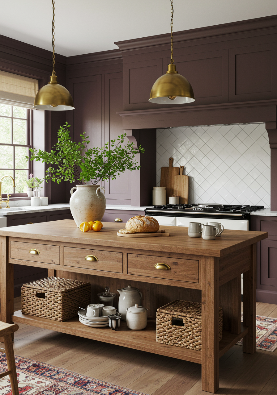 Brass knobs, a wooden island, and wooden vent hood surround add warmth to the kitchen. There’s an even mix of black and white in the Ms. Hosell bedroom, while warm golds add liveliness. If you want to re-create these featured looks, shop the Urbanology Designs website.
